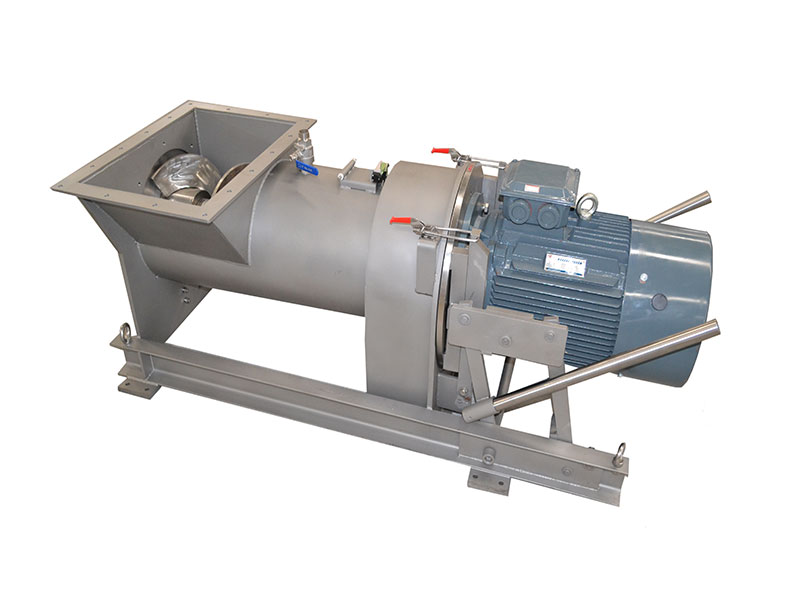 工作过程或原理:待破碎的产品从一个封闭的漏斗,通过进料口进入喂料区,由螺旋输送经升压区移送至破碎区,然后到达旋转破碎机构,在那里由齿状刀片进行破碎。果浆通过一预设的狭缝出口排离壳体。