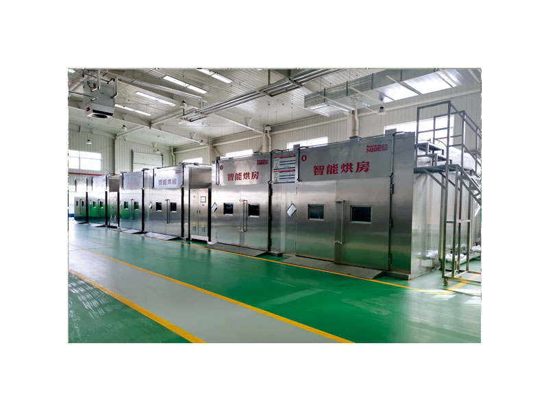 模拟自然界晾房的烘干方式, 热空气或空气经加热后引入到烘房中, 多方位形成喘流, 全方位与物料接触, 达到良好的干燥品质.排湿风机仅仅排出烘房内蒸发出的水份, 其余绝大部分热空气经循环风机至热源加热,与新鲜补风混合后返回烘房继续使用, 达到更好的的节能降耗的效果.