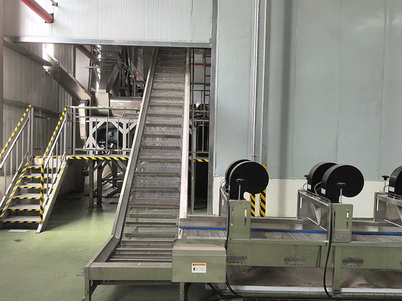 功能描述或适用范围:不锈钢网链刮板提升机主要用于水果等物料的提升,提升物料直径在10~150mm。可将水果等带水物料沿与底面呈40°倾斜角度的低处提升至一定高度,可在工作环境相对潮湿的情况下工作